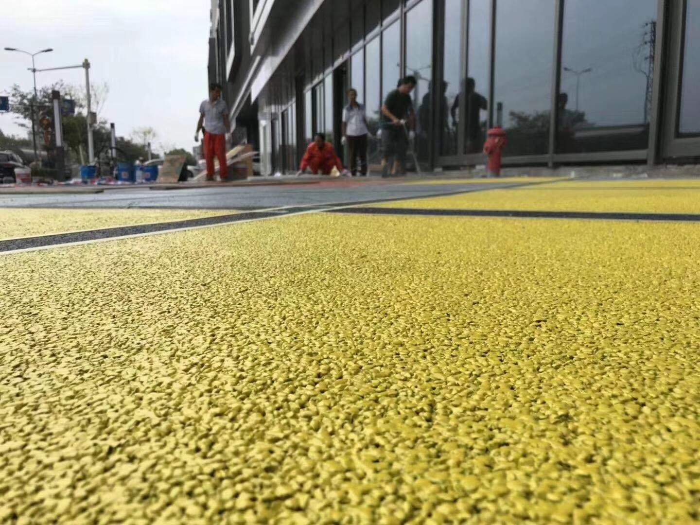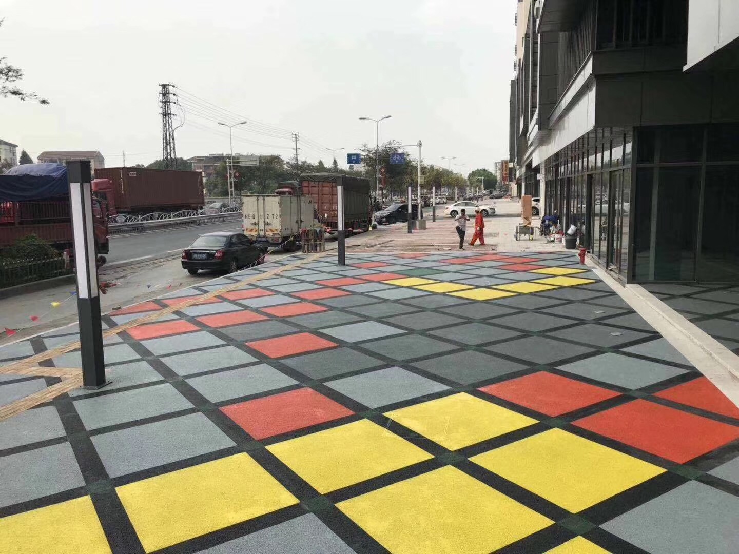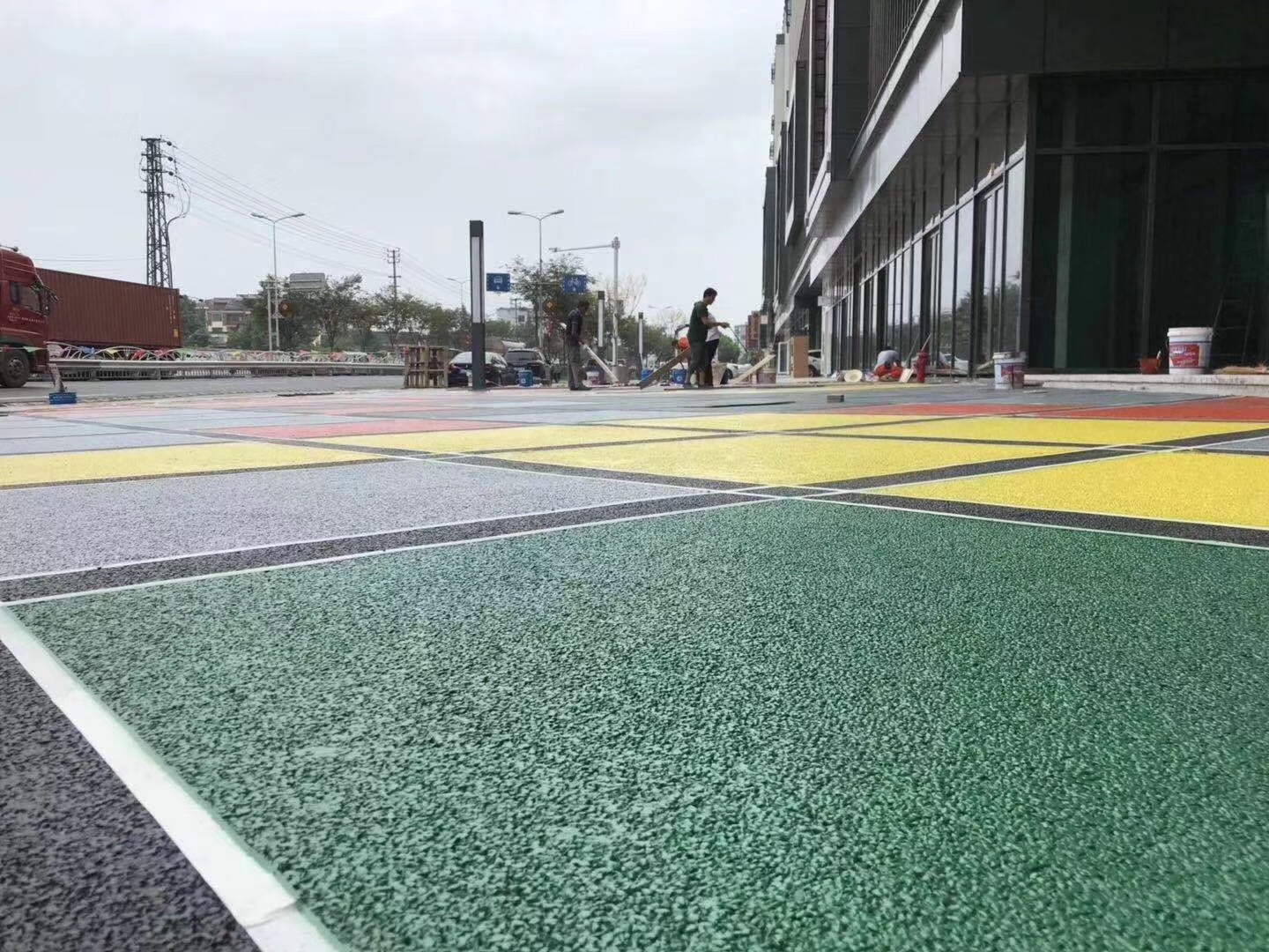透水地坪材料在保留傳統混凝土特性的基礎上顛覆了其色彩單一灰色,呈現出繽紛多樣的色彩表現。